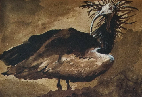 Creative work leads me hither & yon, like a bird who flits from branch to branch. I read about one bird hunted to extinction in the wild. The Northern bald ibis, once migrated from Western Europe to Northern Africa, was reintroduced to their ancestral habitats courtesy of a captive breeding program from the few left in zoos. Then I discovered the kākāpō, the largest parrot. A flightless bird in New Zealand whose numbers fell to a mere 50 due to hunting & the introduction of non-native predators. Though I care deeply for all life, birds are featured in much of my work.